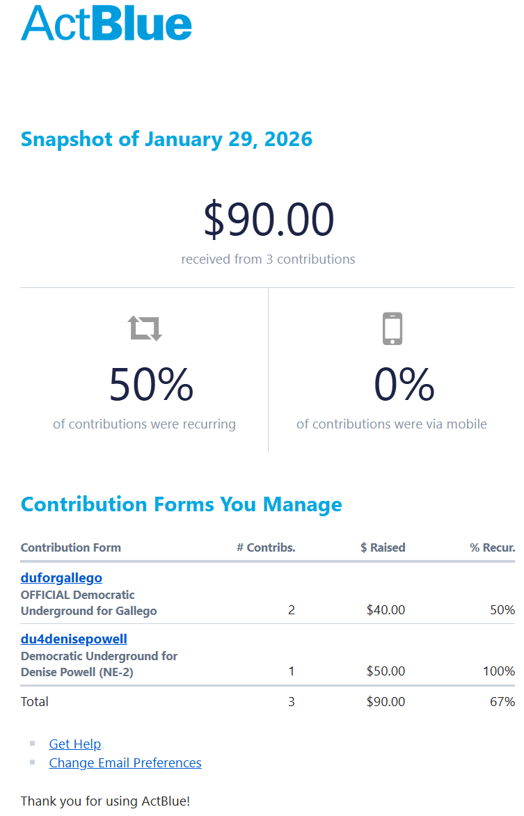 You raised $90.00 on January 29, 2026 @ ActBlue (Original Post) Omaha Steve Friday OP