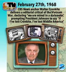 When he said the Vietnam war was destined to end in a stalemate, LBJ said, "If I've lost Cronkite, I've lost middle America."